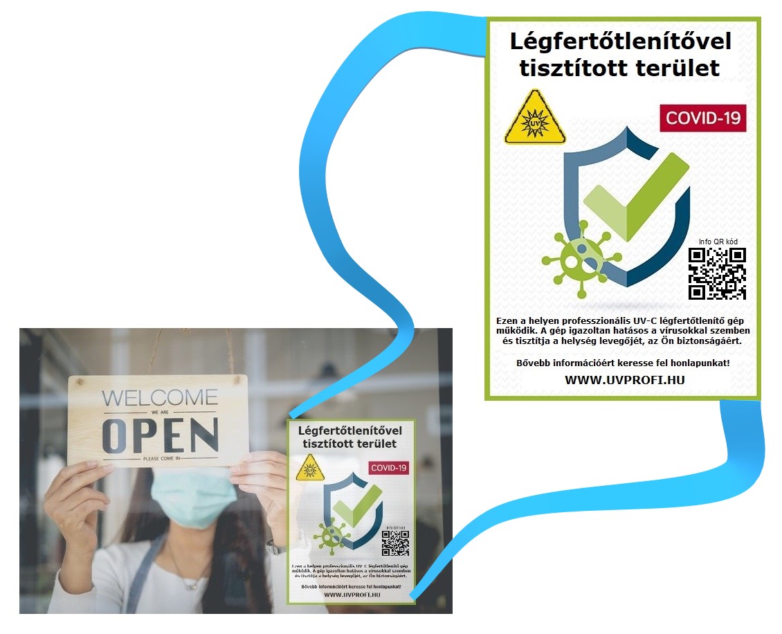- Ingyenes igazoló matricát kapsz, melyet kiragasztva hirdetheted, hogy UV-C légfertőtlenítőt használsz